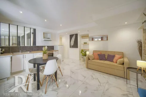 The apartment has been renovated, offers double glazing, air conditioning, and tasteful decoration. Sold furnished.
