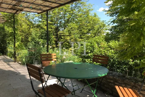 Exclusive In the heart of the village, traditional house on 2 levels with a living area of 147.5 m2 on wooded terraced land of approximately 1000 m2 with swimming pool and garage The house is made up on the ground floor of an entrance and a clearance corridor serving the different rooms on this level. A fitted and equipped kitchen opening onto a south-facing terrace, a living room/lounge with fireplace, beautiful light for this living room, three bedrooms, one of which has a private shower room/wc, bathroom water, guest toilet. Upstairs, a landing with cupboard leads us to two other bedrooms, each with shower and separate toilet. Exterior side, a shed, a swimming pool with liner (2 years), terraces to enjoy the clear view of the Luberon. Land formed by terraces with trees allowing relaxation, vegetable garden and orchard facilities. A beautiful dining space shaded by a beautiful plane mulberry tree which protects from the heat and offers great privacy. The proximity on foot to the village with all shops is undeniably an asset offering freedom of movement to everyone. Some refreshing work to give this house a bit of freshness