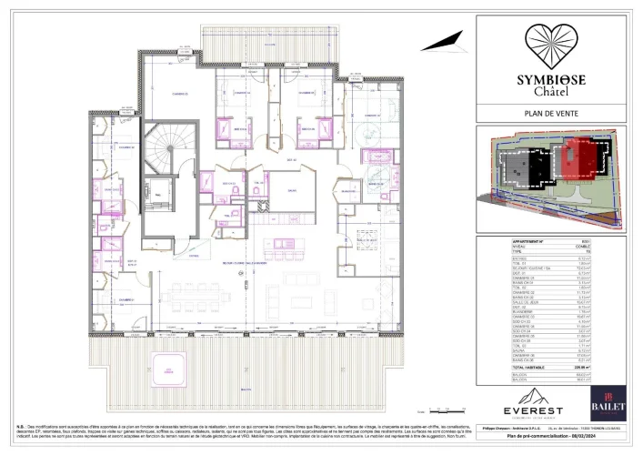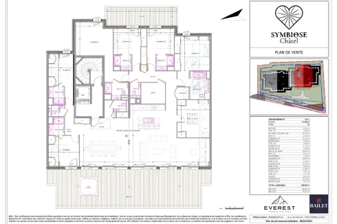 Pure luxury. Penthouse with an incredible living room of over 70 sqm, 6 bedrooms, a sauna, a games room and a jacuzzi on the terrace facing the mountains ! With this flat, the top floor will be entirely dedicated to you. Discover Symbiose, your new residence in the heart of the village of Châtel ! Treat yourself to a new home in the heart of the village of Châtel, in a rare location that combines peace and quiet with panoramic views. The location is ideal : shops and restaurants are plenty and just a few minutes away on foot, the aquatic centre is a stone's throw away and the ski bus picks you up at the foot of the chalets. The flats combines spacious and bright living areas with large sunny terraces offering superb views of the Portes du Soleil summits. Each apartment has been carefully designed to create a warm and cosy atmosphere, perfect for relaxing with family or friends after a day on the slopes. From 1 bedroom to 6 bedroom + cabin, your elegant and authentic apartment is waiting for you. The price includes one or more garages, a cellar and ski storage. The residence is actually under construction which offers you major benefits as notary fees reduced from 8% to 2.5%. It also allow you to personnalized your apartment. Groupe Bailet, developer since 1979, is well-known and reputed for its clients service and relation. The dedicated team accompany you during your purchase journey, to design your unique apartment according to your needs and vision. You would like to combine your holliday home with a profitable investment ? We assist you on getting your 20% Vat rabat on your purchase price and on renting out your apartment during your absence.