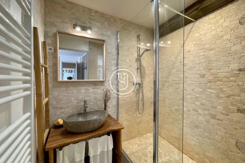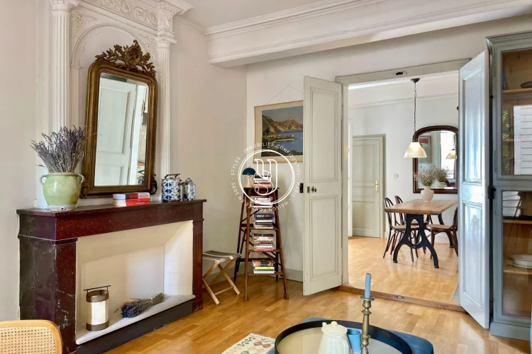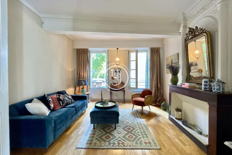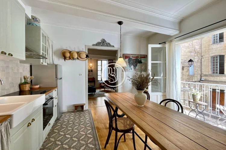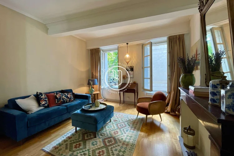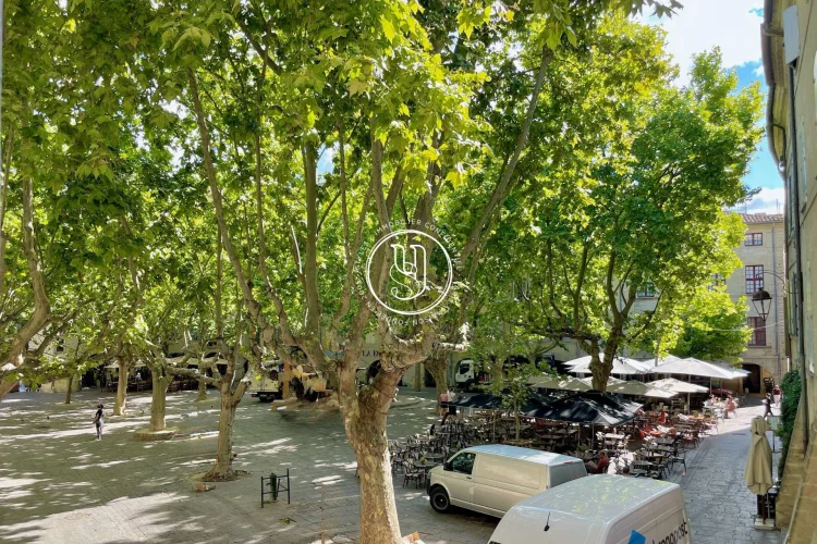 Double doors lead to a spacious living room, facing the iconic square of Uzès. At the back of the apartment, a comfortable bedroom offers peace and privacy, accompanied by a contemporary bathroom and a separate toilet.