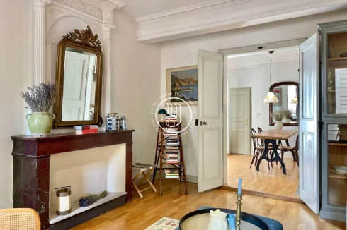 With its original character preserved, it captivates with its authentic features and high ceilings that enhance space and light. The entrance opens onto a large kitchen with a dining area, extended by a cozy balcony the perfect spot to enjoy a morning coffee overlooking a peaceful, sunlit square.