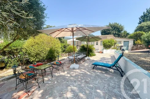Cavalaire Sur Mer - Single-Storey House Located in a quiet and sought-after area of Cavalaire-sur-Mer, close to beaches and shops, this south-west facing air-conditioned house offers a pleasant living environment on a flat plot of 1,178 m² suitable for a swimming pool. With a living area of 122 m² (127 m² floor space), it comprises a bright living room with direct access to a large terrace, an open-plan kitchen, three bedrooms, a shower room and a separate toilet. An outbuilding adjoining the house with its own entrance completes this property. It comprises a living room/lounge with open-plan kitchen, a bedroom, a mezzanine, a shower room and a separate toilet. Outside, several sunny terraces, a landscaped garden, a carport for parking and a storage area add to the appeal of this property.