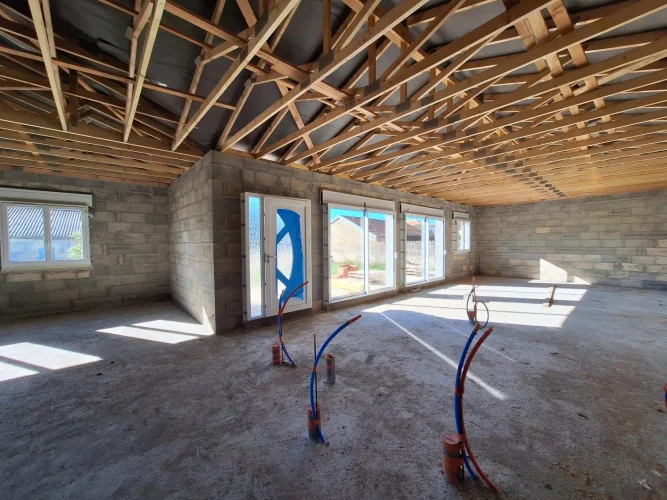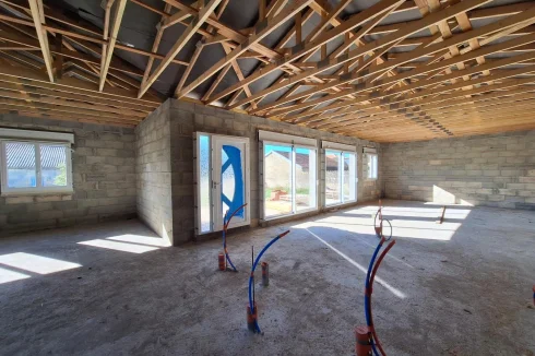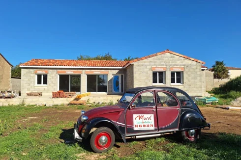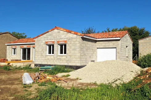 5 mns away La Rochefoucauld, very quiet location, full foot new bungalow 115 m² under construction - delivered out of water - out of air - with placo - not crashed + attached garage 20 m2 and terrace 40 m2 - all on sewer -