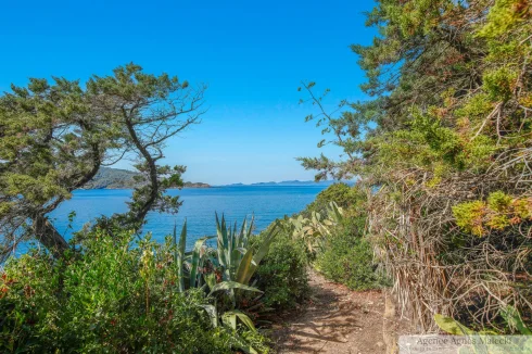 Ile Du Levant Almost Waterfront - Splendid Property Very Close To The Water with Fully Landscaped Land Of 3842M2, living area of approximately 188m2 renovated in 2018 built on 2 levels with entrance hall opening onto large living room/lounge in a row of 65m2 with fitted and equipped kitchen access to very beautiful terrace of 72m2 South South West, master bedroom with shower room and guest toilet. On The Ground Floor: 02 beautiful bedrooms with terrace of approximately 96m2, games room, shower room and laundry room. Lots of greenery, calm. For only vis-à-vis the sea, for only companions the cicadas, for only murmur the sound of the waves. This property, planted with olive trees and Mediterranean species, has a plot of 3,842 m2 that slopes gently down to the sea, which is accessed directly through a small gate. From the entrance, the sea is revealed to you through huge bay windows, with the Port Cros Island Natural Park on the horizon. The dining room/living room is extended by a very large marble terrace, like the rest of the house, ideally sheltered for conviviality and peaceful naps. All bedrooms benefit from the same sea view.