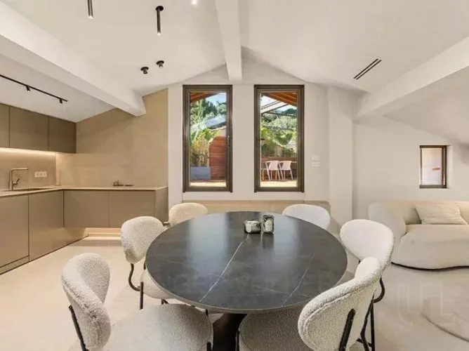 This rare and unusual duplex flat enjoys a prime location just four minutes’ walk from the centre of Saint-Jean-Cap-Ferrat and its beaches. Offering exceptional privacy, the property benefits from numerous outdoor spaces that are not overlooked, with views stretching towards both the sea and the mountains. Adding to its appeal are an enclosed garage and a cellar, ensuring practicality alongside elegance.