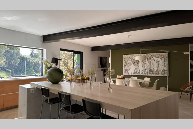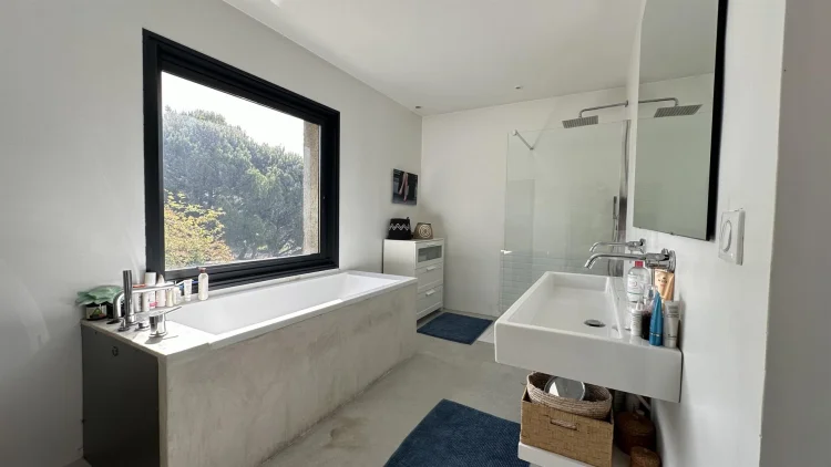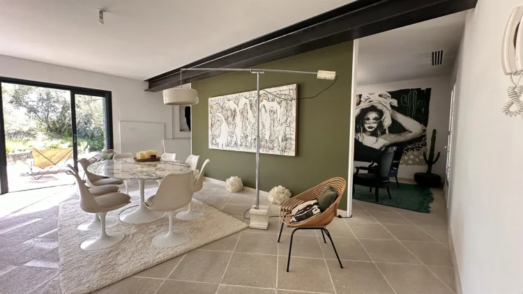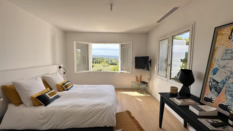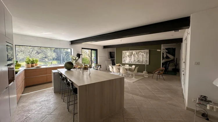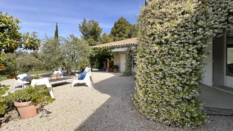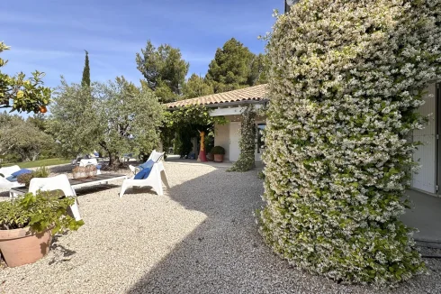 Contemporary house in a dominant position Confidential Sale This charming property is located in a quiet countryside environment with extraordinary views from the Dentelles de Montmirail to Mont Ventoux. On a park of 8270m2 composed of local species and an olive grove, the house with a surface area of 180 m2. Has beautiful, bright living rooms and shaded and flowered terraces with different views.