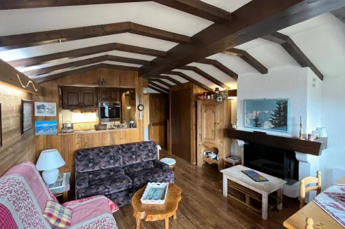 Located on the third and top floor of a small, quiet condominium, close to the ski slopes, this 47.97sqm apartment is the only one on the landing, thus guaranteeing total privacy. The apartment consists of a large bedroom, a bathroom, a separate toilet and a semi-open, equipped kitchen opening onto the living room where a cozy fireplace sits. The bright and pleasant living room opens onto the balcony, perfect for enjoying the exceptional views of Mont Blanc and the surrounding mountains in complete tranquility. The apartment is sold with a cellar and a ski locker. Layout - Hallway with hallway - Semi-open, equipped kitchen - Living room with fireplace - Toilet - Bathroom - Bedroom