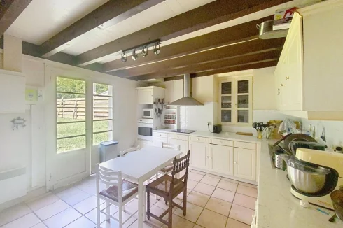 As soon as you enter, you will be seduced by a large living room of nearly 50 m², with its fireplace and overlooking a magnificent south-facing garden that extends over more than 2,400 m², offering an exceptional outdoor space to enjoy the surrounding calm and imagine different layouts. The kitchen, spacious and friendly, is perfectly suited to preparing good meals to share around large tables.