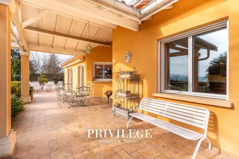 Located at the gateway to Saint-Genis-les-Ollières and Marcy l'Etoile, this 185 m² (192 m²) Carrez law villa, on its 1910 m² (1,910 m²) plot, enjoys a peaceful and privileged setting, offering breathtaking and unobstructed views of Grézieu-la-Varenne.