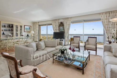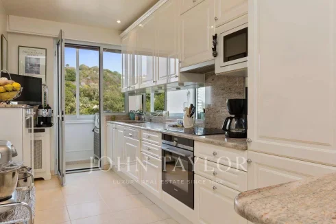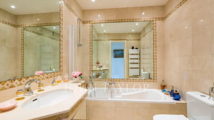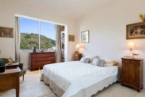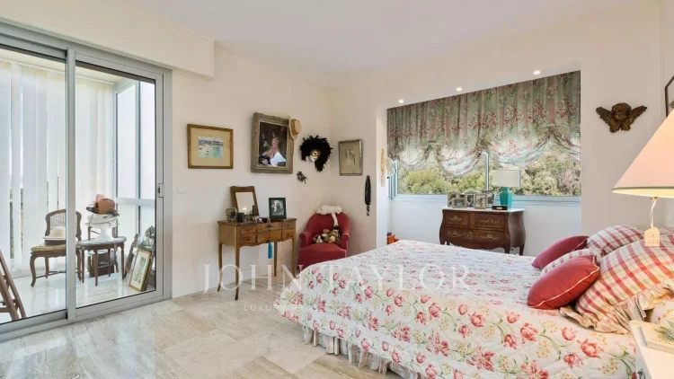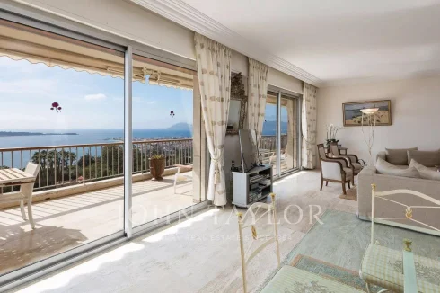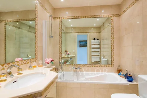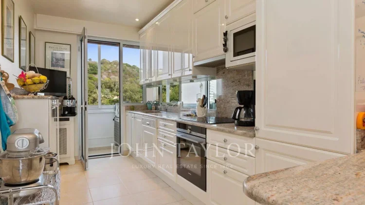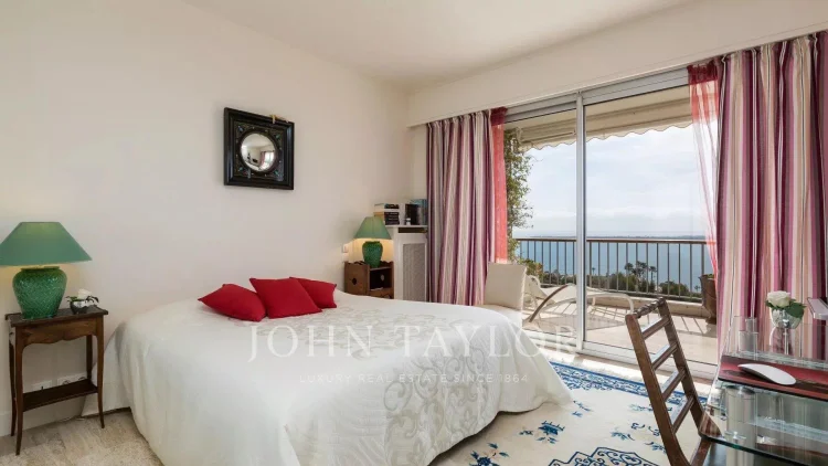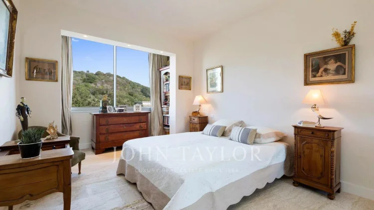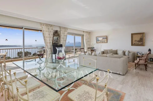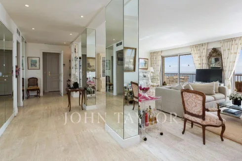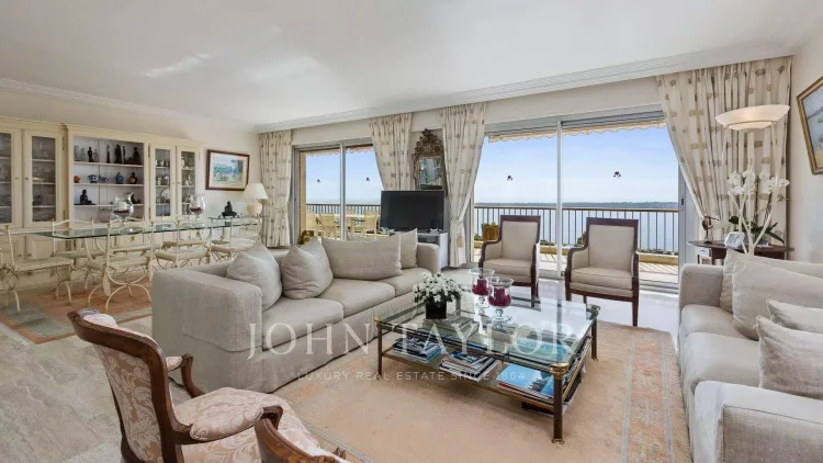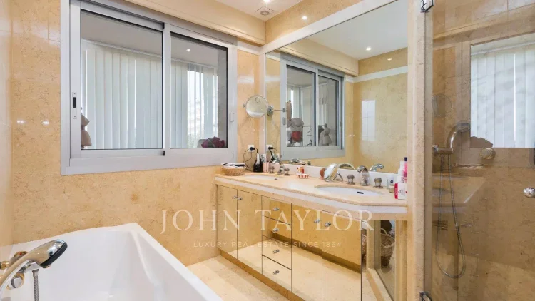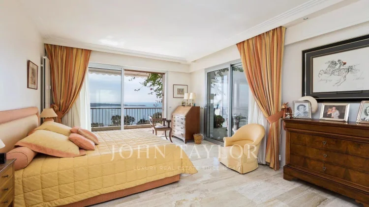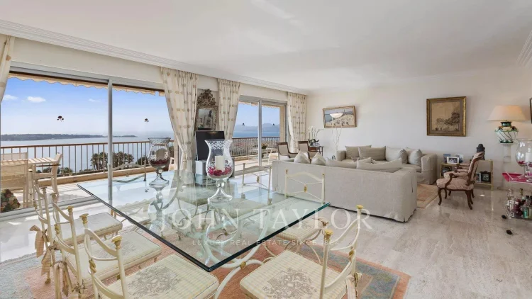 Located in a prestigious residence with swimming pool, tennis court, shuttle service and concierge, this sumptuous 190 m² corner apartment on a high floor offers panoramic views of the sea, the Lérins islands, the Bay of Cannes and the Esterel Mountains.