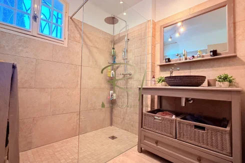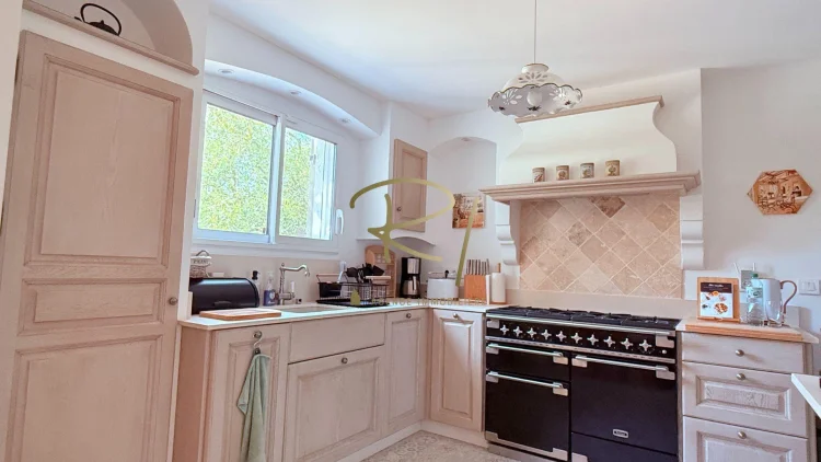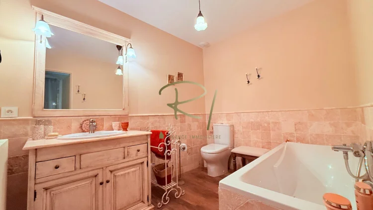 Completely renovated in 2021, it has 105 m2 of living space with 3 bedrooms, a shower room and a bathroom, 2 toilets, a spacious and bright living room of 30m2, a very elegant fully equipped kitchen of 11m2 opening onto a cellar / boiler room and an independent garage. It allows you to live on one level.