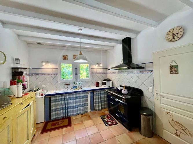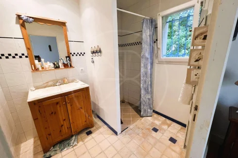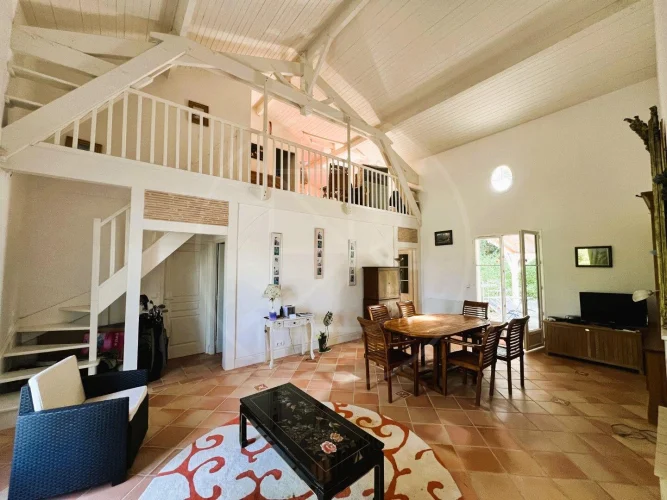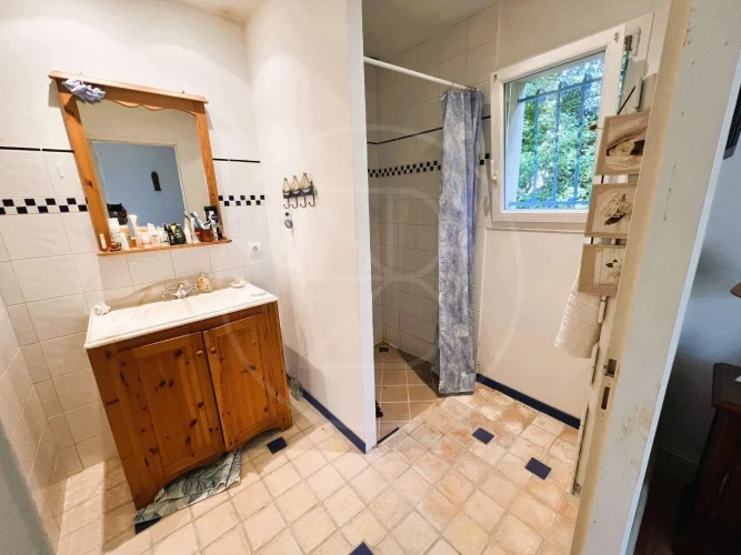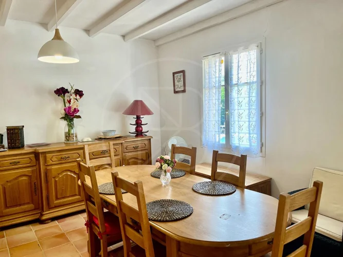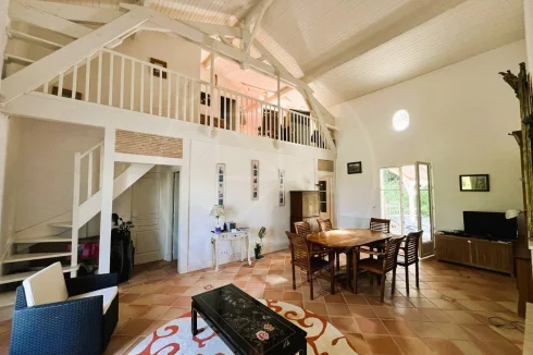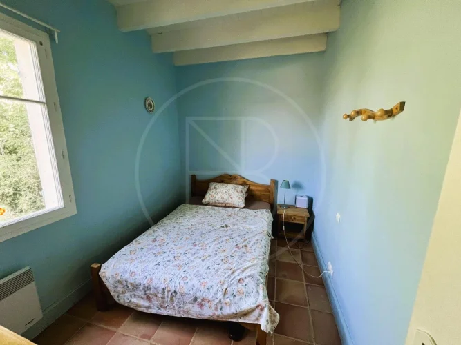 Exclusivity Beyond Immobilier- This charming house, nestled in a preserved riverside village, offers an exceptional living environment. It features a spacious living area with an open kitchen and two ground-floor bedrooms, including a master suite. Upstairs, you'll find a third bedroom and a bathroom with Wc. The mezzanine area can be converted into a fourth bedroom if needed.