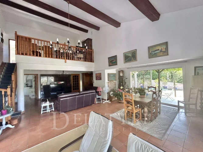 A stunning cathedral-style living room of 62 m², flooded with natural light thanks to large bay windows opening onto several terraces