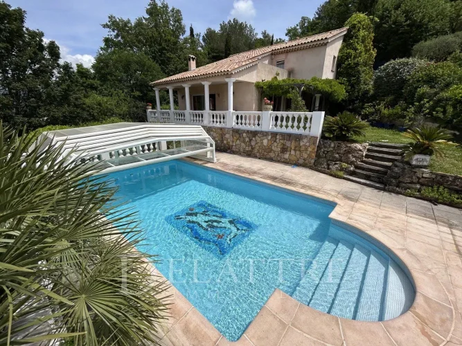 Our agency is delighted to present this spacious family home, ideally set in an elevated position, just a short walk from shops and bus stops to Valbonne and the CIV.