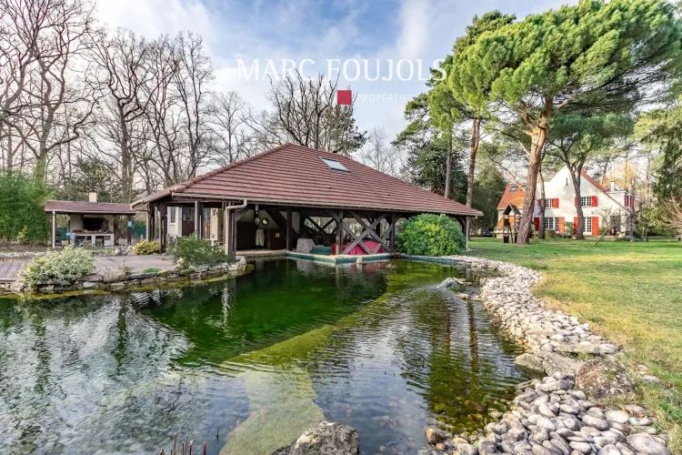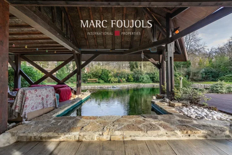 In a preserved setting of 4300 m², this elegant 1930s residence combines authenticity and comfort. Its landscaped natural pool, designed for swimming, is the centrepiece of the property: a place of freshness and serenity, perfectly integrated into the garden. The main house consists of an entrance, a double living room, a separate kitchen, five bedrooms, an office and a bathroom. A large courtyard with summer kitchen, an independent caretaker's house and a 30 m² garage enrich this set, ideal for a main or secondary residence.