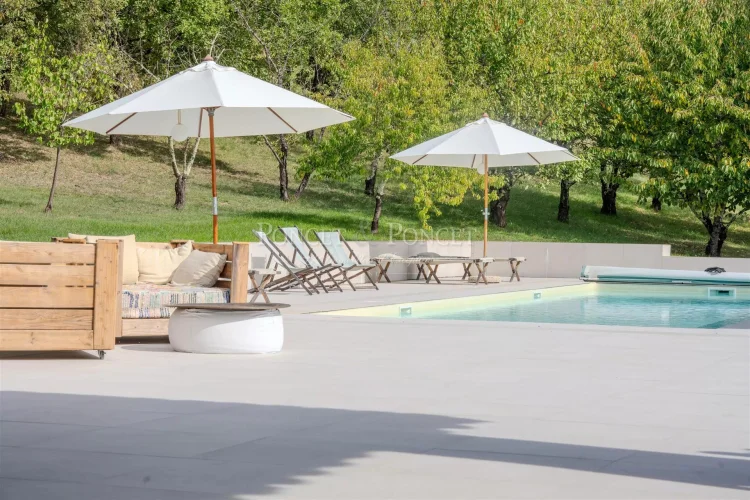 Outdoors, a generous orchard features a variety of fruit trees, including a kiwi plantation and magnificent fig trees, adding a gourmet touch through the seasons.