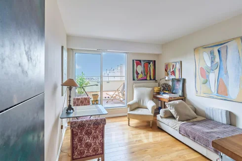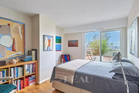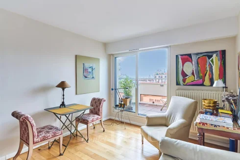 Lamarck-Caulaincourt neighbourhood. This peaceful and sunny apartment commanding a panoramic view is on the 7th and top floor of a relatively recent co-ownership with a caretaker, a lift and a swimming pool.
