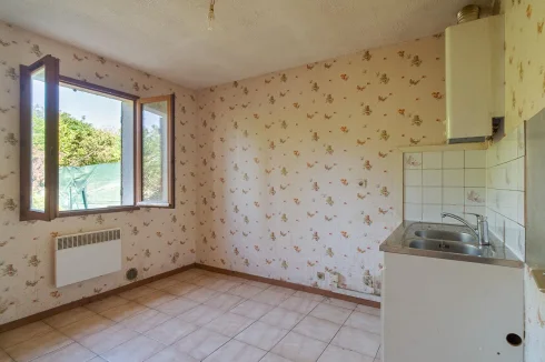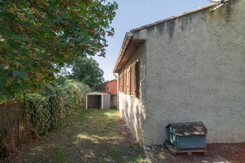 8 minutes from the entrance to Carcassonne, on the heights of the village of Leuc, here is a four-sided pavilion sitting on a small wooded and enclosed plot. The house has 73.5m² on one level and four main rooms. According to a classic plan, a hallway at the entrance leads to the independent kitchen on the left and, on the right, the living room which extends over 21m² and is illuminated by two French windows opening onto the garden. At the end, the night hallway leads to three bedrooms, a bathroom, a separate toilet and a cupboard. The whole, if it needs serious refreshing, has harmonious proportions making it easy to use like an apartment. The same goes for exteriors that will not require much gardening effort but can be fitted with an above-ground swimming pool or a car-port. A small part of a well-located house which is a very nice opportunity to settle. What if you were the lucky one? For more information, contact us. 3388