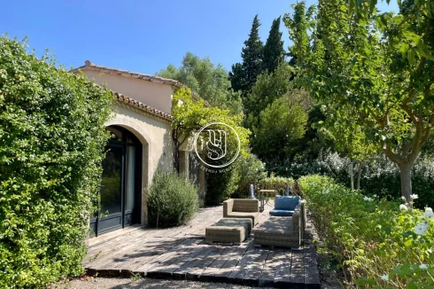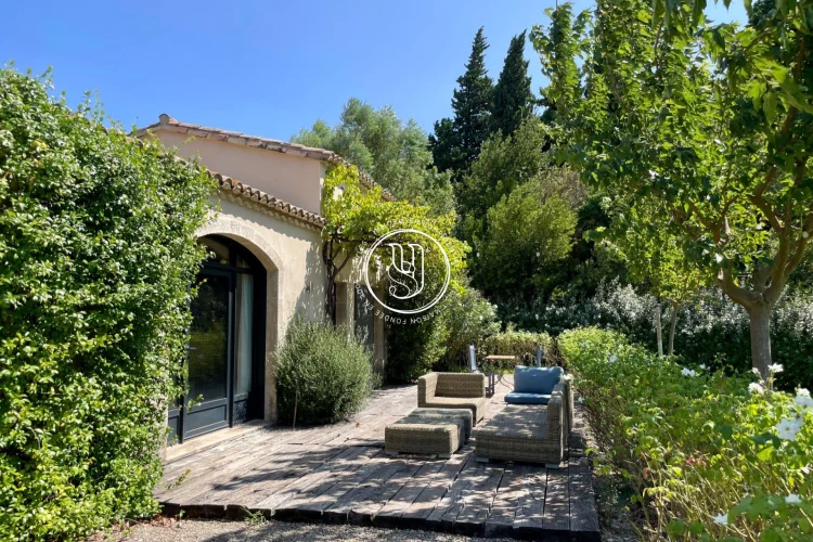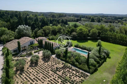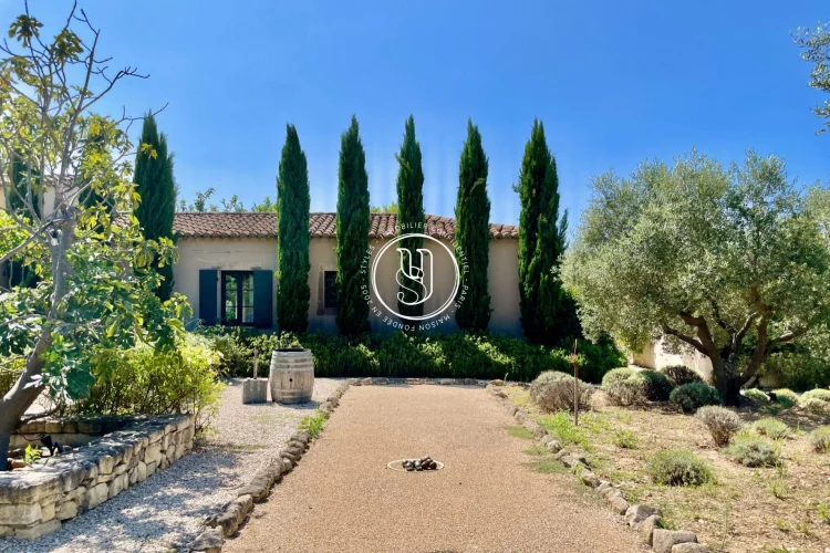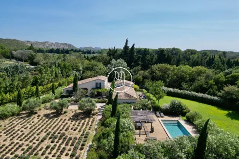 Exceptional setting for this property and its view of Les Baux de Provence... Located in Maussane and surrounded mainly by olive groves, the property's gate opens onto a beautiful driveway, revealing a place completely preserved from the outside world by its mature vegetation: double hedged fences, lavender, olive trees... All combine to create islands of calm and rest in this park adjoining the living spaces.