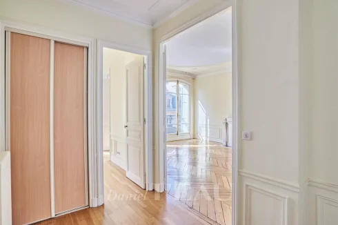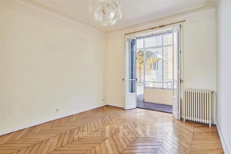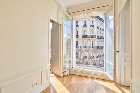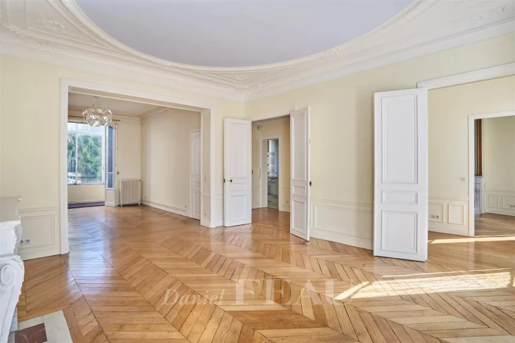 Rare. Located 200 metres from Parc Monceau, on the 2nd floor without lift of a beautiful mansion dating from 1872, this elegant 113.6 m² Carrez apartment benefits from a beautiful terrace overlooking a peaceful garden and accessible via a charming veranda.