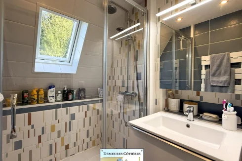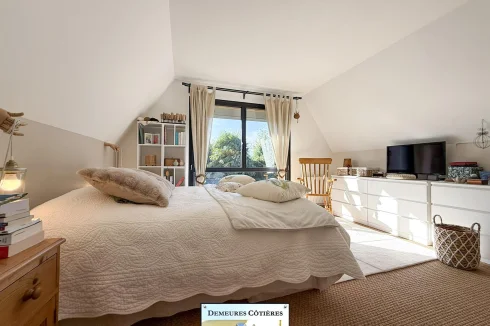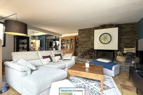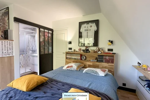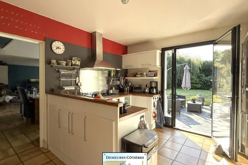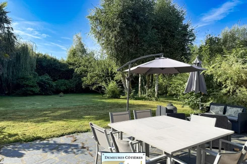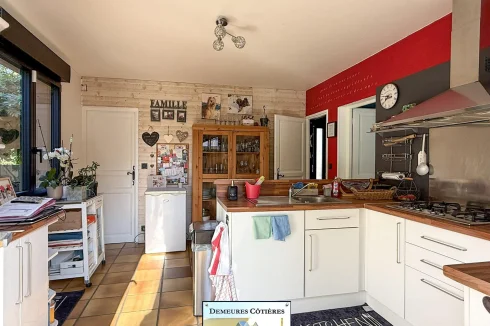 Once through the gate, a driveway will lead you to the entrance of the house, which is well cared for. The entrance hall is large and welcoming and offers storage, as well as access to a full basement. The cathedral living room, flooded with light and opening onto the terrace and the garden, is particularly pleasant, It also benefits from a fireplace. The fitted kitchen is spacious and friendly, ideally equipped. A corridor will lead you to a very beautiful bedroom located on the ground floor, with recently renovated en-suite bathroom.