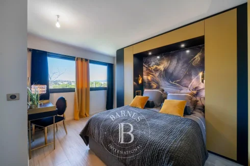 In the Puy district of Antibes, just minutes from the town center and beaches, this beautiful 75 m² apartment is located on the top floor of a secure residence with landscaped gardens, a swimming pool, and tennis courts.