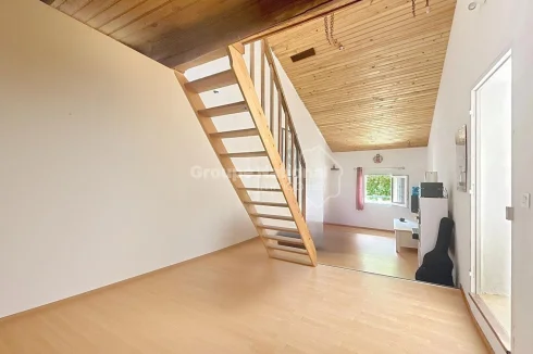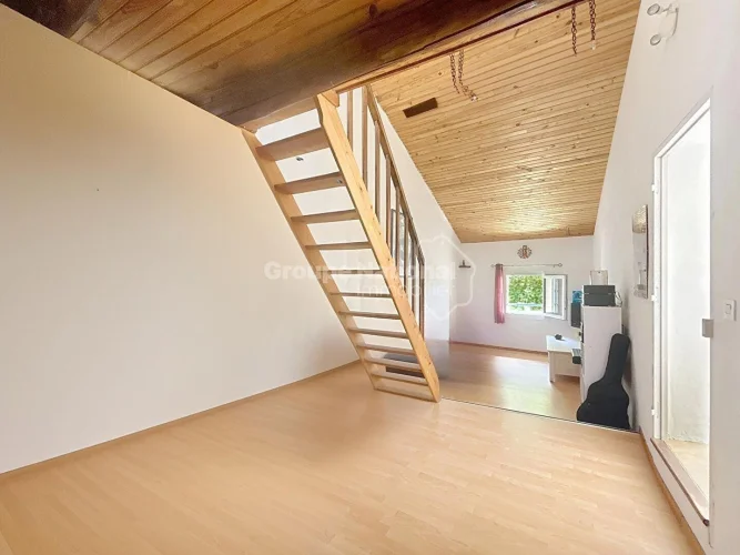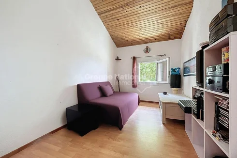 R+1 you will find a nice living room open to the dining room and the kitchen with a total area of 38m2 with a balcony, a fireplace.