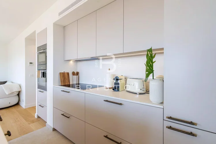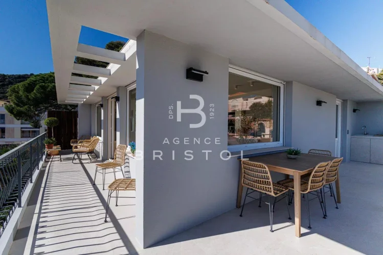 It also features a superb 100 m² private rooftop terrace, fully furnished and landscaped, offering a panoramic view over the bay.