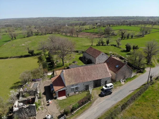 Gîte B&B project (or not!), come and discover this set of 2 houses that can be lived in immediately with barns on 2,600 m² of wooded land. We even know that the charm of the surrounding countryside will convince you to put down your suitcases for good! DPE: E and G