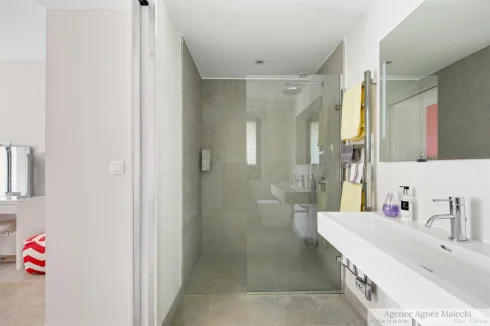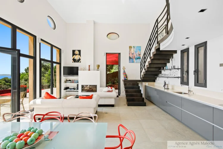 Bas du Rayol Canadel? A 3-minute walk from the beach and close to the village. Discover this superb recent contemporary villa, with refined lines and high-end services, offering a breathtaking view of the sea and the islands . Built on a fully landscaped plot , it consists of five bedrooms with their adjoining bathrooms or showers , as well as an independent outbuilding converted into a studio . Outside, you will enjoy a heated infinity pool with its sun-drenched terraces, a car gate, as well as a private gate leading directly to the beach . Every detail has been carefully thought out to combine comfort, elegance and seaside living. A remarkable achievement to discover without delay. For more information or to organize a private visit, contact Georgelin Malecki at or by email at . At the bottom of the Rayol Canadel - 3 midnights away from the beach on foot and close to the village. Discover this superb recent contemporary villa, with fine lines and high quality, giving an amazing view of the sea and the islands . Built on an entirely landcaped plot of land, it is home to five bedrooms with their bathrooms or showers, as well as an independent house built into a studio. Outside, you will benefit from a heated infinity pool with it's terraces bathed in sunlight, a car access , as well as a private gate giving staight onto the beach. Each detail has been well thought out to bring comfort, elegance and a life by the sea. An impressive villa to quickly discover. For more information or to organize a private visit, contact Georgelin Malecki at the or by email at .