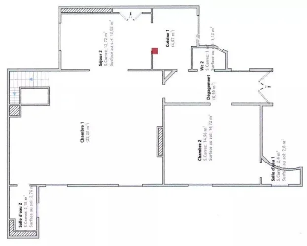 Currently resulting from the merging of two lots (still legally distinct), the apartment offers strong potential for renovation or redivision.