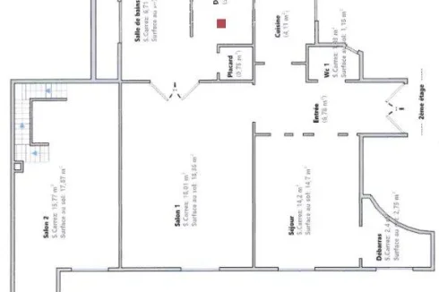 On the 2ᵉ floor: a living room with exposed beams, a bedroom, a shower room, a vast through living room with staircase hopper, as well as a small kitchen.
