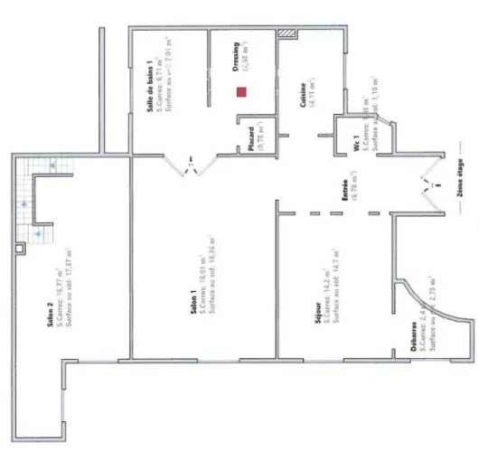 On the 3ᵉ floor: a second living room, a bedroom with dressing room and bathroom, as well as a second kitchen.
