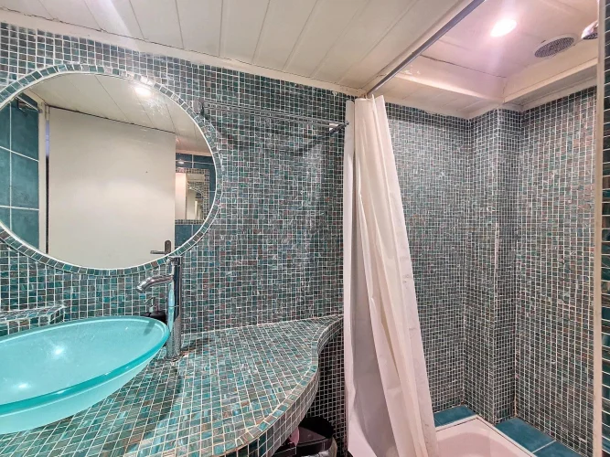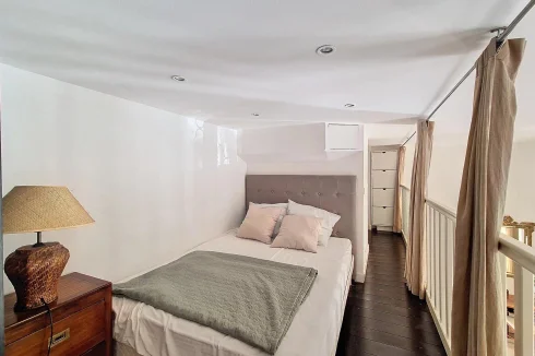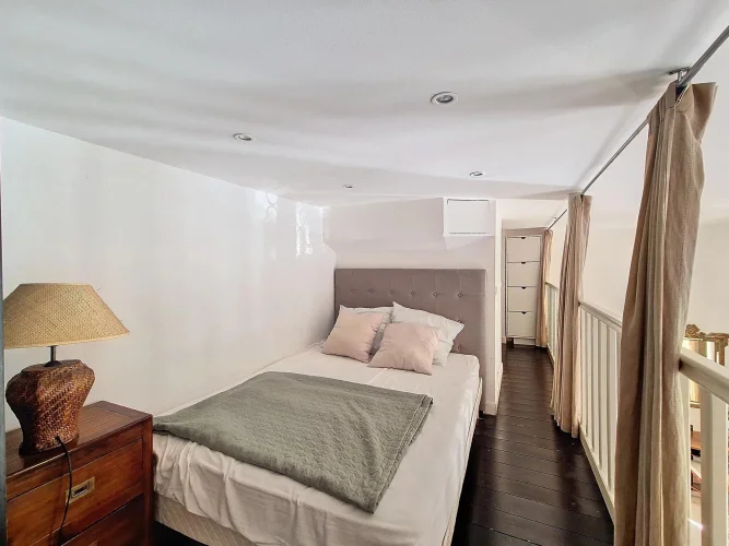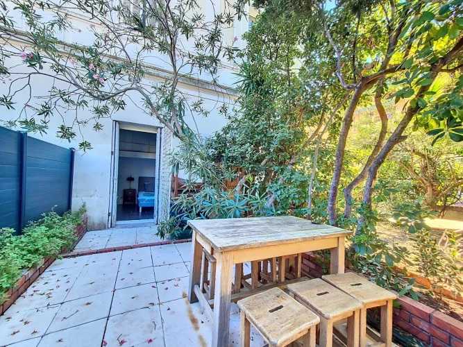 10 minutes from the Croisette beaches, in a former hotel converted into apartments, 3 bedrooms apartment comprising a living room/kitchen, a ground-level bedroom with a shower room, and 2 mezzanine bedrooms with an additional shower room. Lovely south- and north-facing garden. All shops and buses at the foot of the building.