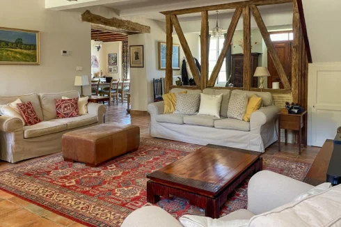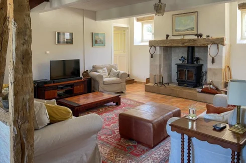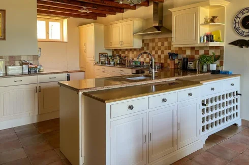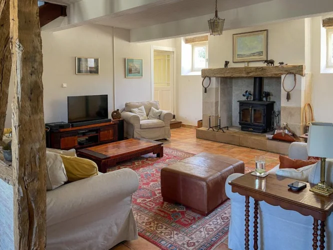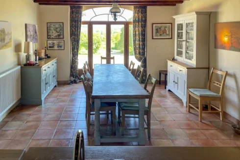 This beautifully restored farmhouse, with its 4 ensuite double bedrooms, 3 reception rooms, lake, pool and pool house, provides a perfect setting for entertaining. The current owners have dedicated much love to restoring the property, ensuring year-round comfort. The main house features a hall, lounge, dining area, fitted kitchen, and versatile utility room. A stunning pool house offers relaxation space near the pool. Upstairs, four en suite double bedrooms, including a master suite, offer luxurious accommodation. The grounds feature rewilded meadows, a natural lake, and a productive orchard. Notable features include oil-fired central heating, fiber-optic internet, and the property's excellent overall condition. In summary, this home combines modern comfort with the charm of an old property, ideal for peaceful family living or entertaining guests.