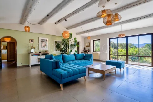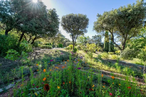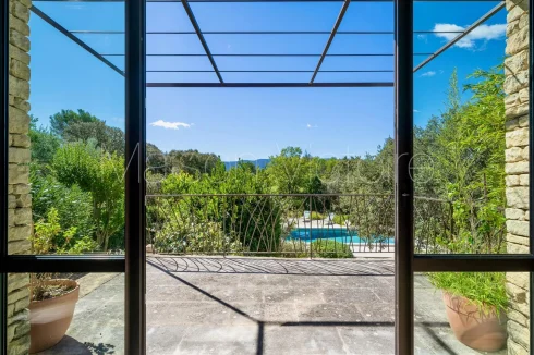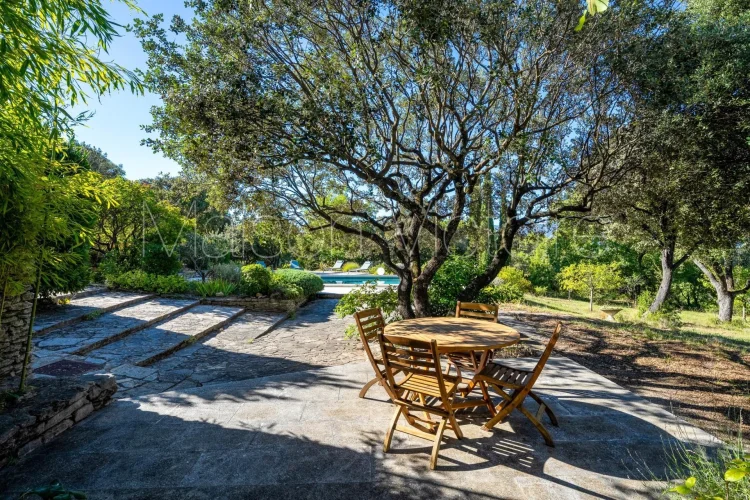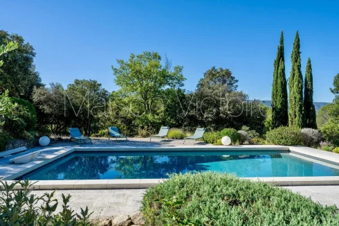 Set in nearly two acres of landscaped grounds, the property offers a typical Provencal dry garden, home to a wide variety of native flowering plants, shrubs, trees and herbs, and surrounded by mature woodland. Meandering paths lead through the gardens, with a series of shaded seating areas and dining terraces offering spots to relax, unwind and enjoy the peaceful surroundings. At the heart of the garden lies a 10m x 5m salt-water swimming pool, framed by a wide stone terrace with plenty of space for sun loungers.