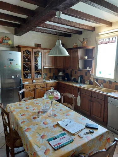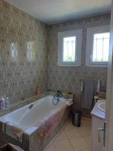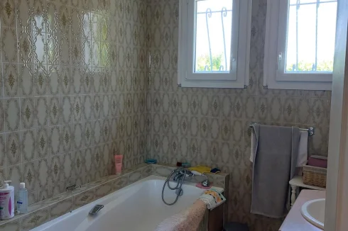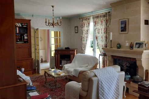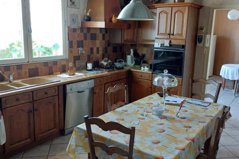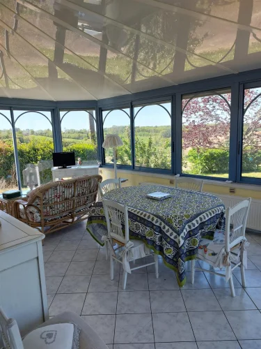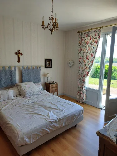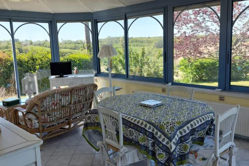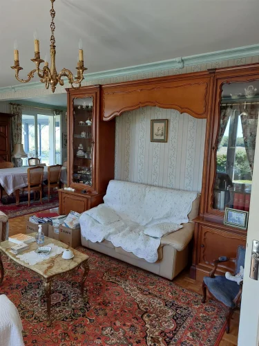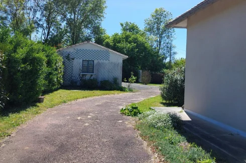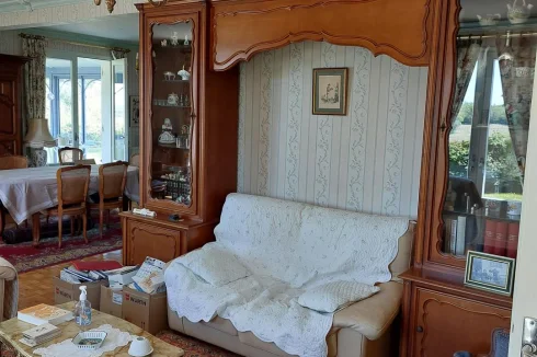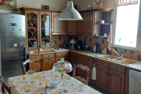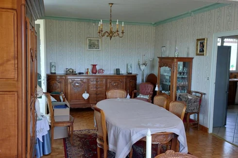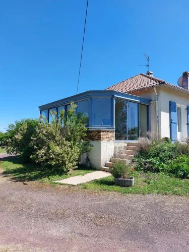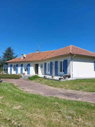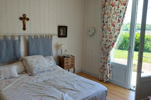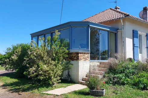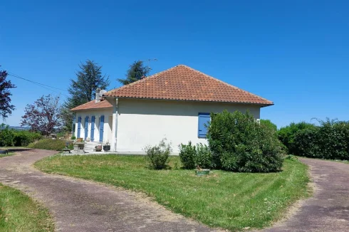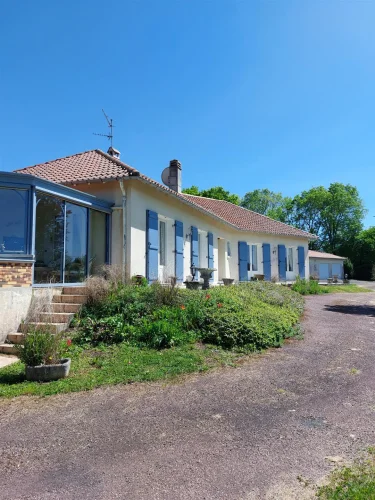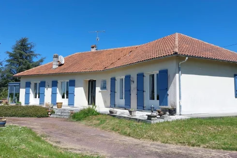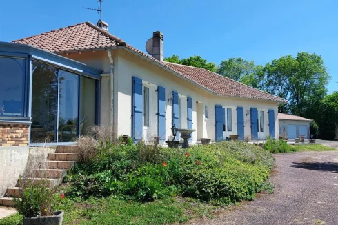Very beautiful single-storey house with beautiful view of enclosed and wooded land comprising: