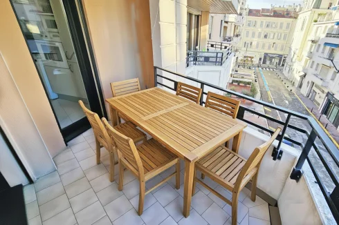 Great opportunity! Cannes city center, Rue Antibes, ideally located in a luxurious residence just steps from all shops, the Croisette, and the beaches, comfortable and bright 2-bedroom apartment on a high floor, living room opening onto a beautiful south-facing terrace, 2 bedrooms with a balcony, apartment in perfect condition sold with a cellar and the option to purchase, in addition to the listed price, a garage in the building's basement with elevator access.