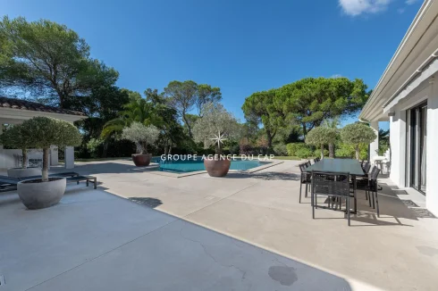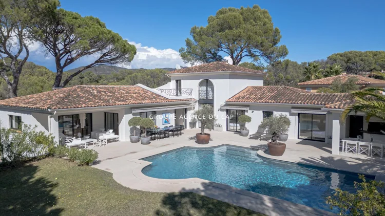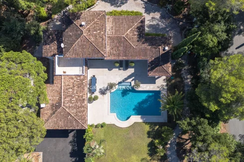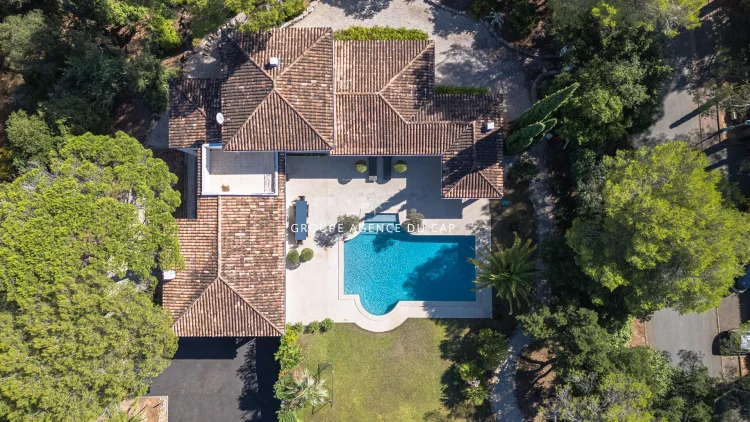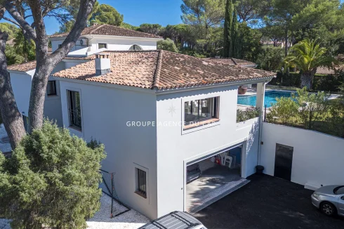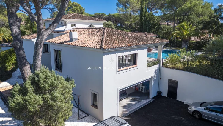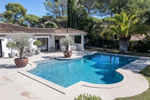 Valescure, private residential estate, walking distance to shops, beautiful villa overlooking 1900 sqm of landscaped garden with swimming pool, 5 bedrooms, 3 bathrooms and 1 shower room. Double garage independent apartment, perfect condition.