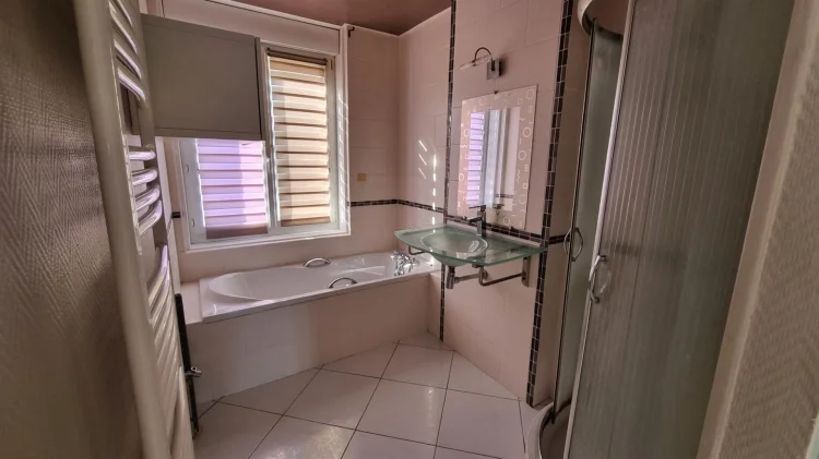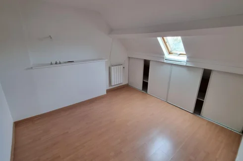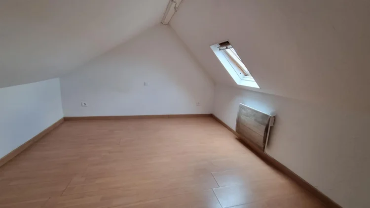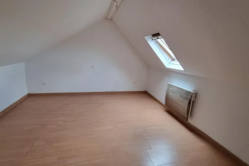 On the 1st floor a landing leads to 2 bedrooms, one of which is 7 m2 - The attic has been converted into 1 additional office. Basement under the house including laundry room - Wooden terrace, partly enclosed garden - The other sloping part gives access to a dilapidated garage