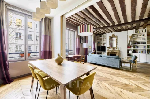 Rue de Seine, Saint-Germain-des-Prés. This sunny 105 sqm apartment oozing with period charm is on the 3rd floor of a fine 19th century building.