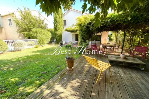 For Sale Caissargues Magnificent house with large independent studio, garage and swimming pool. The Besthome agency offers you in Caissargues this magnificent 230 m2 detached house, completely renovated with taste. It includes a large independent studio , a garage with wine cellar, as well as a superb swimming pool , all on a landscaped plot of more than 800 m2 and not overlooked. Nestled in the heart of Caissargues, its location is ideal: the tram bus and all amenities are within walking distance (bakery, pharmacy, town hall, post office and local shops) . The motorway is less than 5 minutes away, allowing you to reach Nîmes and its surrounding areas very quickly. It includes, on the ground floor, a beautiful entrance, a large bright living/dining room , a fitted kitchen opening onto the garden . You have a 15 m2 office as well as a large 23 m2 room (soundproofed) ideal for musicians, for a games room or for an additional bedroom . You will also find a shower room with toilet, as well as a laundry room. A beautiful stone staircase leads upstairs, where there are three beautiful bedrooms , a large dressing room which could become another bedroom, as well as a shower room and separate toilet. The best part of this house is its large, independent, 36 m2 air-conditioned studio located above the garage. It has a fully equipped kitchen and a bathroom with a toilet. It can accommodate 4 to 6 people thanks to its mezzanine. Ideal for hosting family and friends, or generating rental income. Outside, you will be charmed by its well-kept, tree-lined garden , which features two terraces shaded by flowery pergolas and a beautiful, secure 4 x 8 m swimming pool (roller shutter and barriers) with fully automated salt treatment. Facilities: gas heating on the ground floor, ducted air conditioning upstairs, wooden shutters and electric roller shutters in the living room, water softener, drilling, direct production solar panels, electric gate and intercom and fiber. A rare and unique property, combining charm, modernity and functionality just 5 minutes from Nîmes. This property is presented by the Best Home Agency, 6 Place Questel in Nimes. Tel: Email: contacest- Contact: Olivier Sauret at Real Estate Sales Agent registered with Rsac Nîmes No. Information on the risks to which this property is exposed is available on the Géorisques website: Sale price including fees, payable by the purchaser.