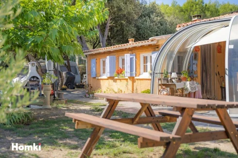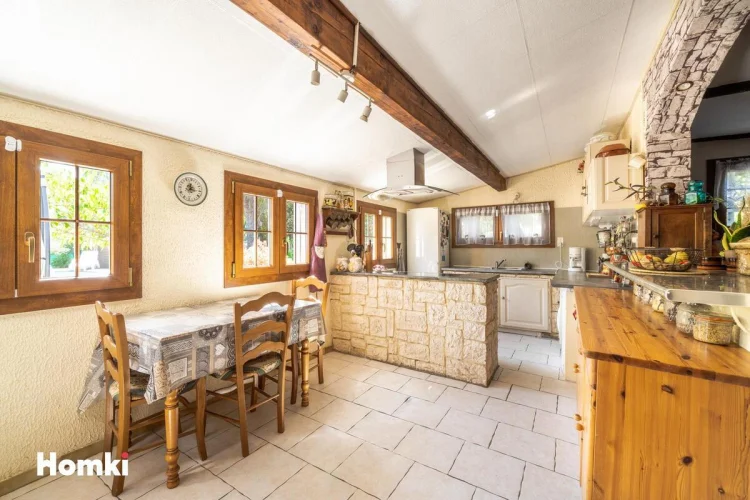 In Cabrières in the Gard, only 17 km from Nîmes and the entrance to the A9 motorway 6 km away, Marguerittes, shops and services, come and discover this single-storey house nestled in a peaceful environment, where calm and nature reign supreme. On 84 m² of living space, it offers 3 bedrooms, an independent fitted kitchen, a bathroom with shower, a separate toilet, as well as a south-facing terrace and a veranda bathed in light.