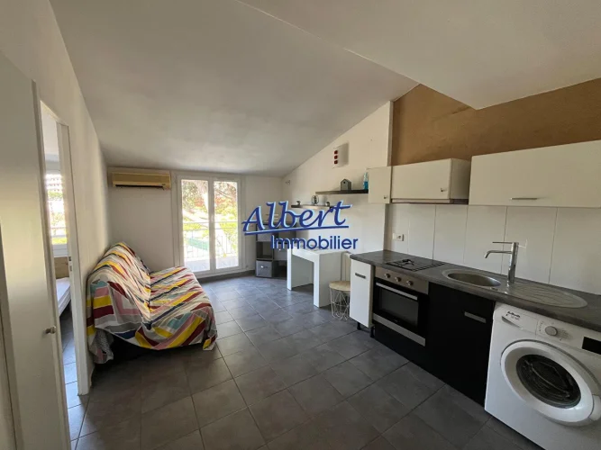 Walking distance from the beach of Sablettes, T2 apartment of about 27.94 m² located on the 3rd and last floor without elevator, including a living room with kitchen of about 15.18 m², a bedroom with cupboard, a bathroom with toilet, as well as a TERRACE.