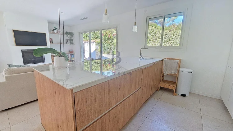 Located in a quiet environment, this pretty villa to renovate comprises a single-story living and dining room of over 35m² and a fully equipped kitchen opening onto a living room with a serving hatch, all opening onto a veranda.