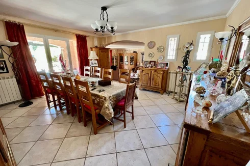In the sought-after area of Les Brusquets, come and discover this spacious villa of 383 m² built on a wooded plot of 1907 m², facing West, offering superb volumes and multiple living spaces.
