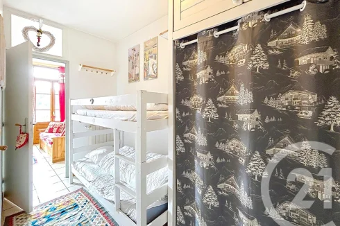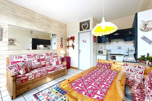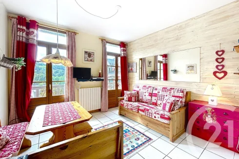 Saint-Gervais-Les-Bains Ideally located in the city center, in the immediate vicinity of all amenities and a ski-bus shuttle stop, this studio with sleeping area with a total surface area of 24.43 m² benefits from a privileged location. Located on the 1st floor of a small authentic condominium, the apartment is composed as follows: an entrance with independent toilet, a bathroom and a sleeping area. Opposite, the living room with living room/kitchen, facing west, is bathed in natural light and offers an unobstructed view of Mont-Joly, the Aravis mountain range and the central square of the village. Ideal for a pied-à-terre in the mountains or a rental investment. In outbuilding, a ski locker completes this property. Excessively energy-consuming housing: class F.