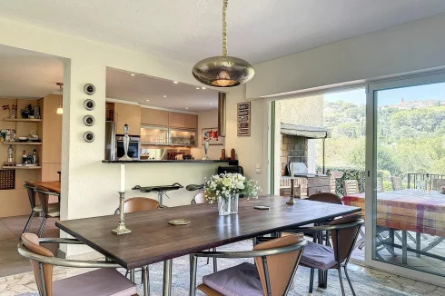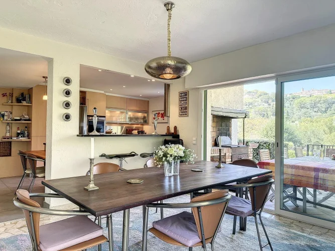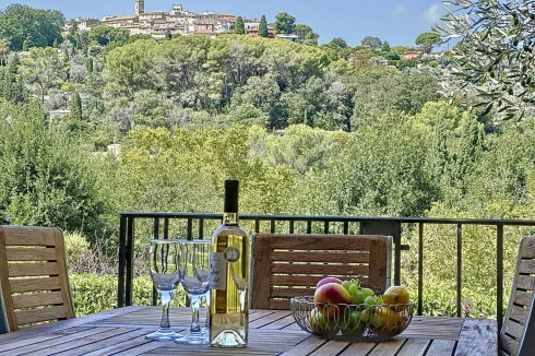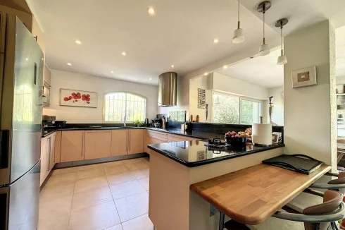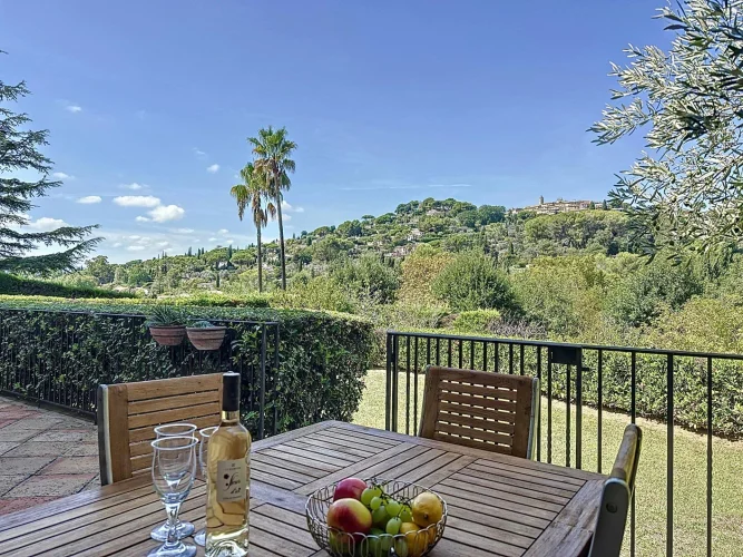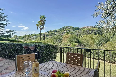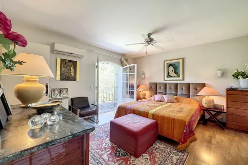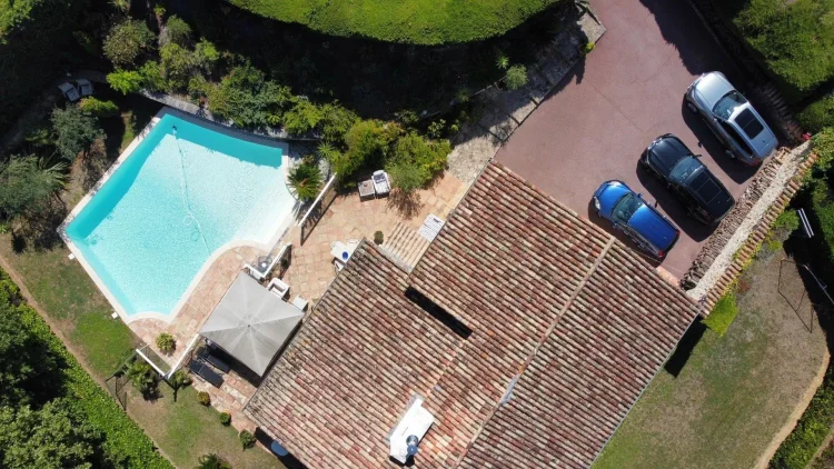This villa is in an exclusive domain in the well-known southern French town of Mougins. From the villa there is both a magnificent view and walking distance to the extremely charming old town in Mougins. The city is known for the very good restaurants, galleries, narrow alleys, and southern French charm.