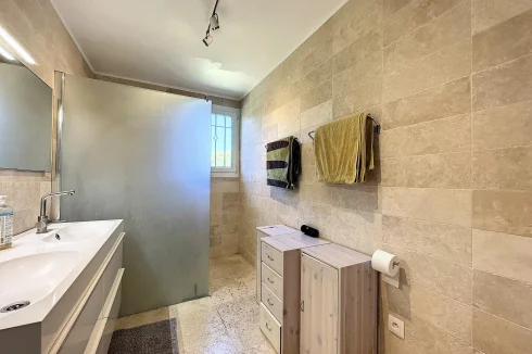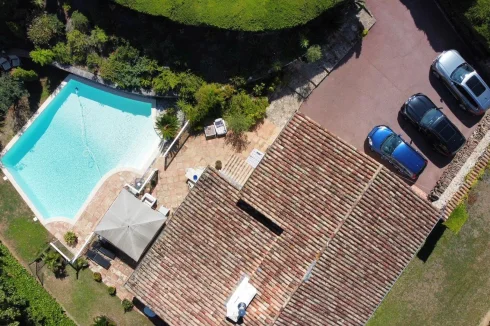 The villa has a quiet, south/east facing and completely unobtrusive swimming pool/lounge area. To the north-west there are several cozy terraces, a lovely lawn, fruit trees and a beautiful view to the village.