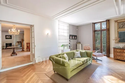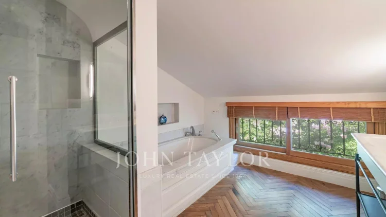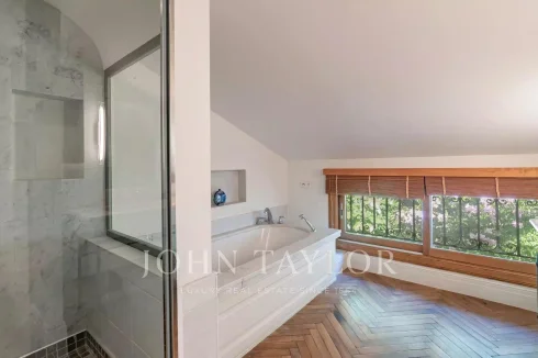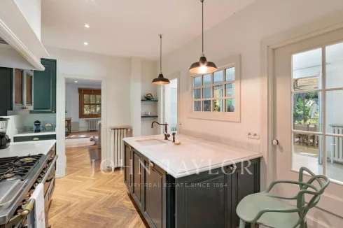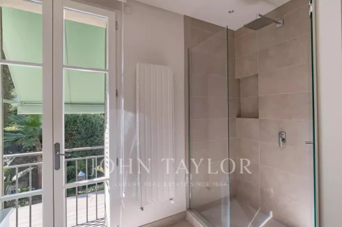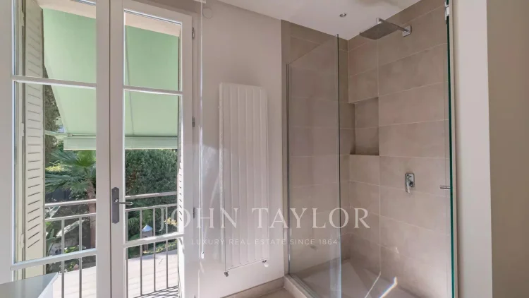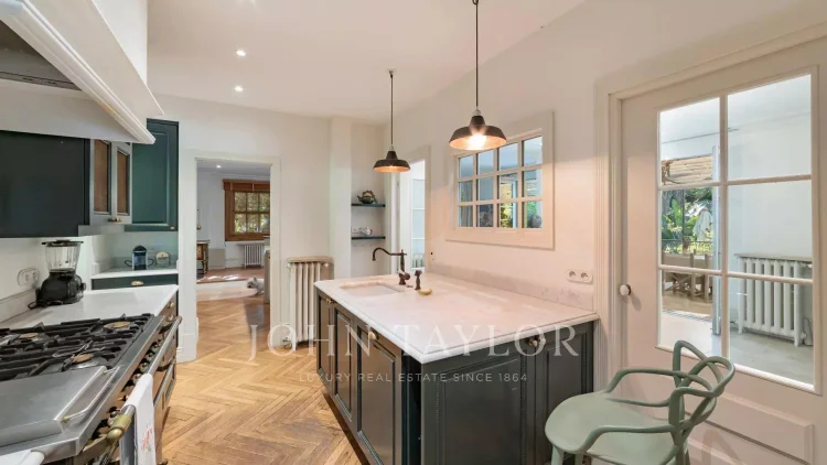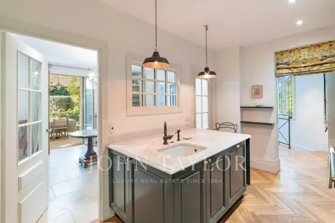 It is composed as follows: an entrance hall with high ceilings, a living room, a dining room with direct access to the large terrace and a salt pool, a fully renovated kitchen with beautiful materials.